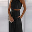 Stay cool and comfortable in this sleeveless top with wide leg trousers for summer. The sleeveless design allows for effortless movement and breathability, while the wide-leg trousers offer a loose fit that's ideal for hot summer days.
